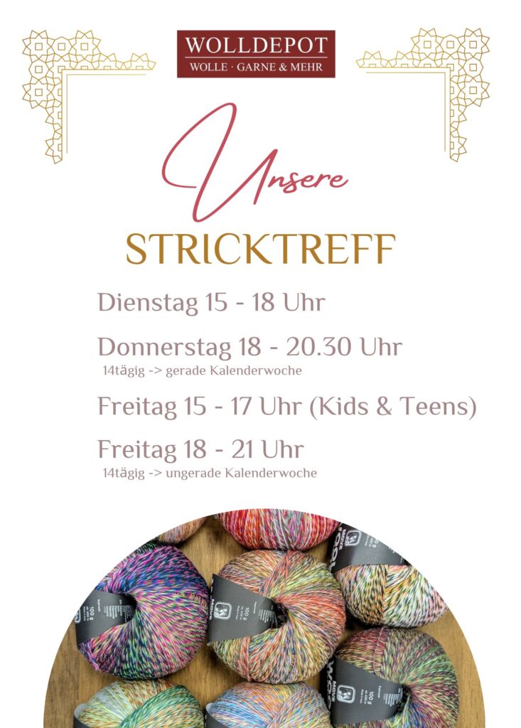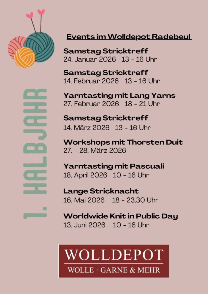 Der nächste Samstag-Stricktreff findet im November am Samstag, dem 15.11.2025 von 13 – 16 Uhr im Wolldepot Radebeul statt.