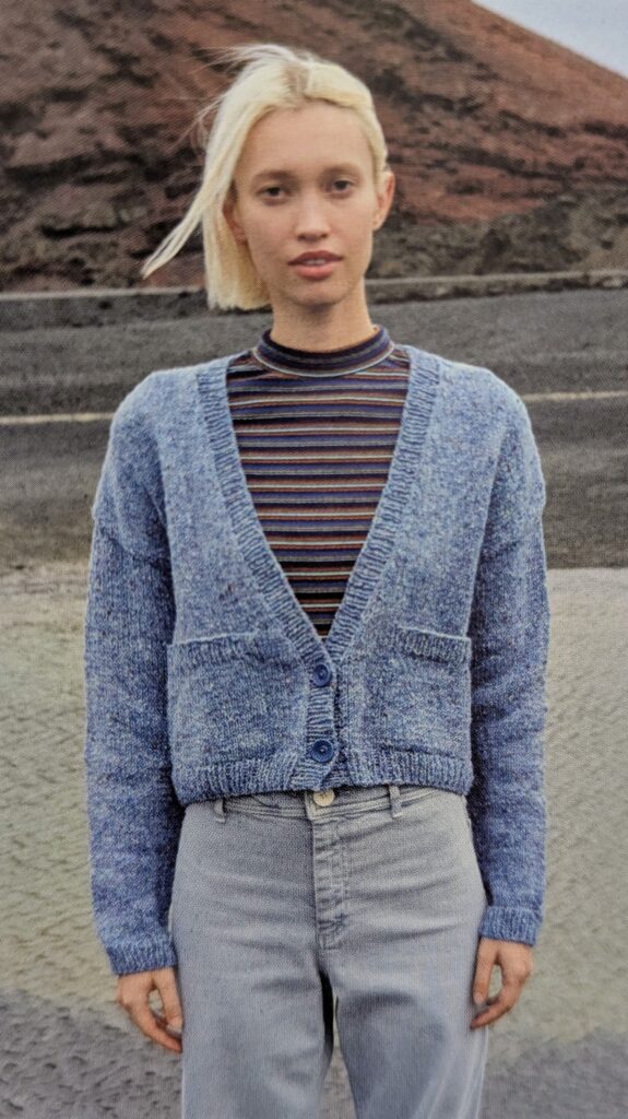 Der Pullunder ist aus dem Garn „TSUIDO“ (japanisch für Tweed) von Noro gestrickt. Es ist ein 100% Schurwollgarn.